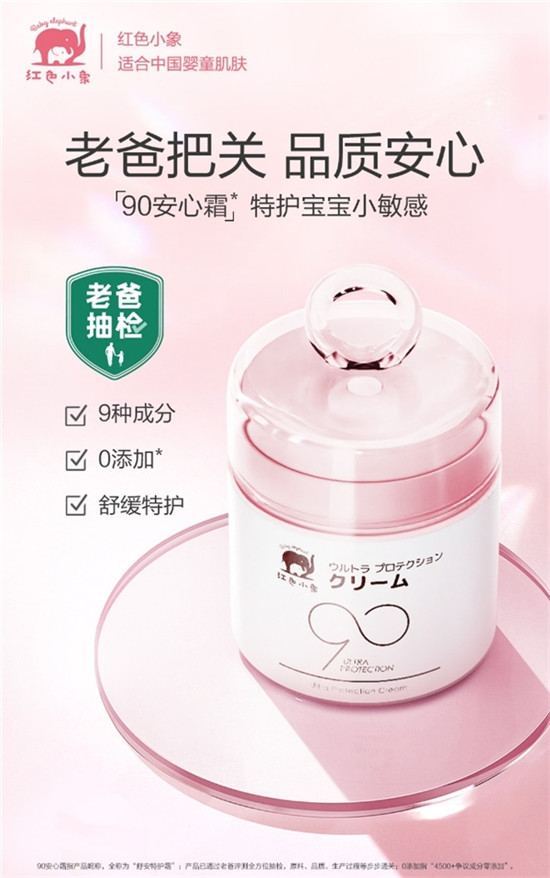 紅色小象90安心霜有效呵護寶寶的脆弱肌膚,緩解媽媽的選購焦慮,為年輕父母省卻了更多養育過程中的精力和時間成本,此舉在嬰童護膚界極具開創和引領意義。